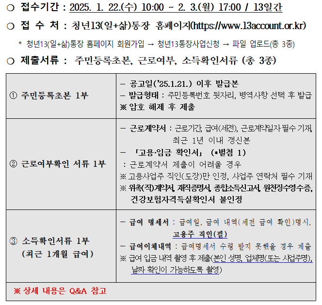 2025년 광주 청년13통장의 신청 기간은 1월 22일부터 시작되며, 신청 기간은 12일간 진행됩니다.